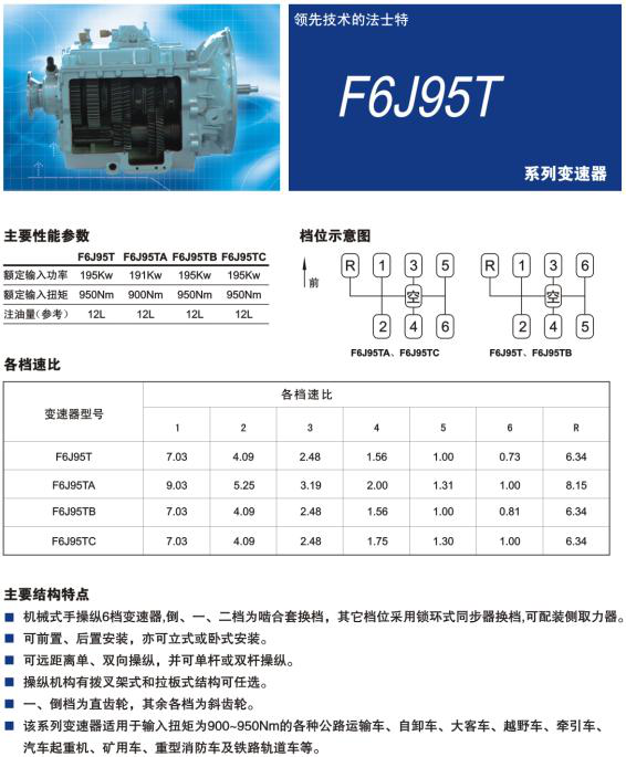 法士特變速器F6J95T系列