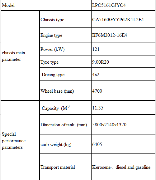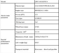 底盤主要性能參數(shù) | 底盤型號 | CA5160GYYP62K1L2E4 | |