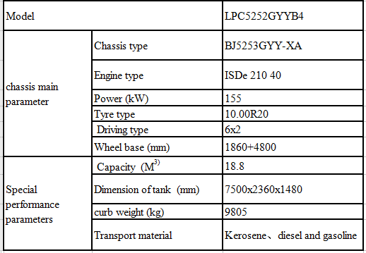 底盤主要性能參數(shù) | 底盤型號(hào) | BJ5253GYY-XA | |
